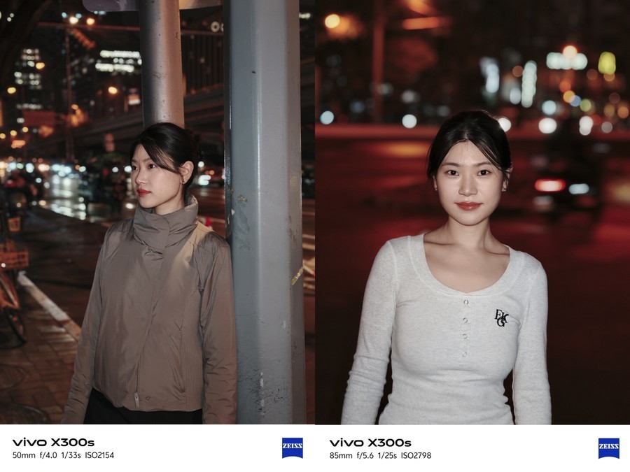 晚上拍人像,背景的路灯变成柔和的光斑,人物主体清晰又突出。总之,用它拍人真的很像拿相机+专业补光灯拍的,但我只用了一台手机就搞定了。它的闪光灯也是X300 Ultra同款变焦闪光灯,夜景长焦人像也有很好的补光效果,皮肤更有质感。