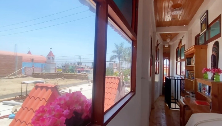 来到二楼,首先看到的是房子尽头的迷你阳台,能看奥卡亚马市广场全景,这便是整栋房最窄的地方,只有63厘米。