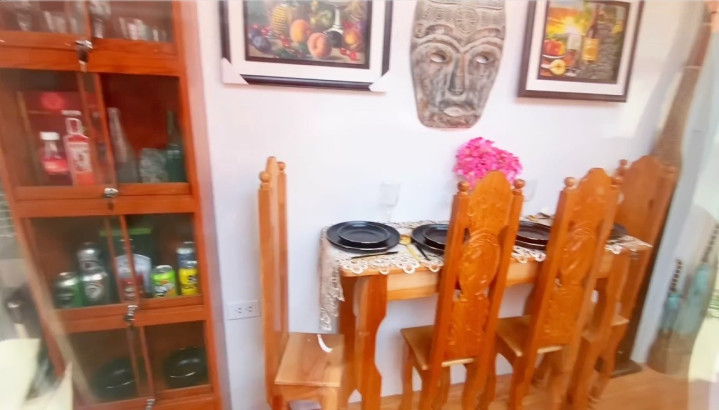从客厅往前,是房子的餐厅。虽说得靠墙吃饭,但挤一挤也能容纳三四个人。