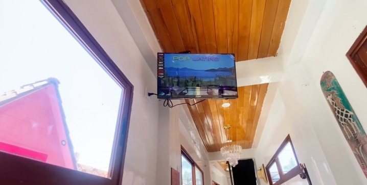 (电视挂在天花板上)