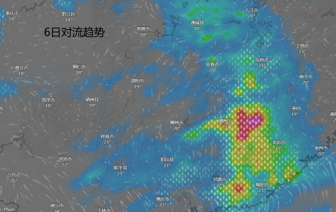 而湖南,广东,浙江等地也有10毫米到25毫米的发展雨水区间,但强度并不大,过后再次进一步减弱,大部分区域都是0-10毫米区间,如果没有强对流天气,就是阴雨的模式了。