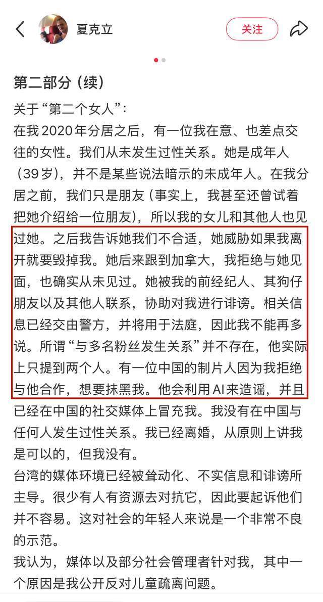 退一万步讲,这一切的一切其实啥都属于夏克立的自由,因为他早在2022年的时候就已经离婚,不过官司是在24年结束的。